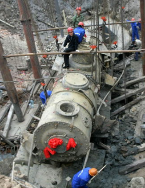 為了進(jìn)一步對(duì)機(jī)車進(jìn)行研究,有關(guān)單位負(fù)責(zé)人員決定將機(jī)車打撈上來,施工現(xiàn)場(chǎng),工人在火車兩邊搭建了幾根承重架子形成結(jié)實(shí)緊固的門形架,并在架子上懸掛了幾臺(tái)手拉葫蘆,葫蘆拉動(dòng)車體緩緩上升,在拉動(dòng)過程中,有兩臺(tái)葫蘆出現(xiàn)過故障,工作人員換上備用葫蘆后繼續(xù)扶正起吊火車。最后將其平安起吊了地面上。