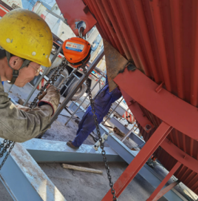 當用冠航手拉葫蘆吊裝分離器的高度達到200-500mm時,需要檢查分離器的平穩(wěn)性和綁扎的牢固性,以及重物的重心是否有偏高情況。吊完分離器后,還可以摘下手拉葫蘆參與到其他零部件的吊裝工作中。