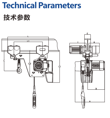 所有電器連接均為插入式——即插即用通用型懸掛機構,既能用于KBK標準軌道又可與小車快速連接
