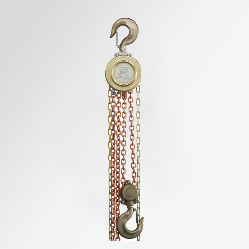 冠航防爆手拉葫蘆,可在易燃易爆場所使用,在有火患和爆炸危險的施工場所下比普通起重設備更為安全,可有效避免潛在爆炸危險;
